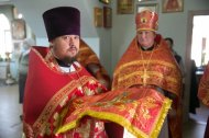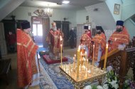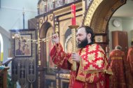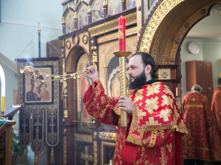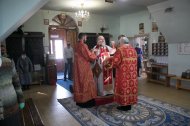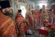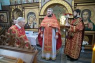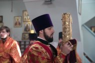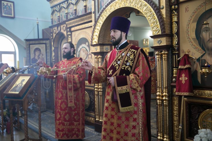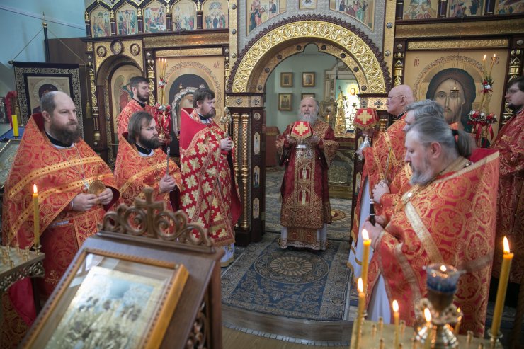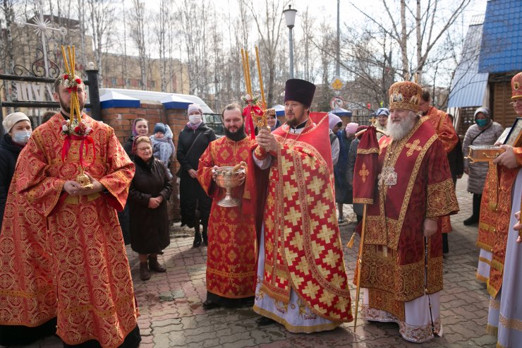 Его Высокопреосвященству сослужили: благочинный Ханты-Мансийского благочиния, протоиерей Сергей Кравцов; настоятель храма, иерей Леонид Бартков; секретарь управляющего епархией, иеромонах Антоний (Кирпичев); духовенство храма. Диаконский чин возглавил диакон Даниил Матвеев.