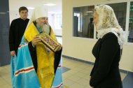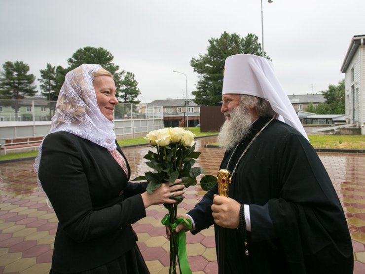 По окончании митрополит Павел обратился к собравшимся: «Вас, Ксения Геннадьевна, с коллективом, всех учащих и учащихся, с освящением! Это Божие благословение, которое мы получаем на всякое благое делание, а тем паче получить благословение от Господа на учение детей, как мы говорим, уму- разуму, чтобы они восприяли те науки, которые должны восприять, а Вам можно было их преподать с коллективом педагогов. Для этого мы и совершили освящение и сотворили молитву, чтобы Господь освятил Ваши труды, на те знания, которые будут преподаваться детям, которые будут здесь и образовываться и воспитываться. Я надеюсь, что мы с Вами будем сотрудничать в плане духовно- нравственного воспитания и образования, вместе трудиться на этой необходимой нашему обществу стезе. Пусть Господь благословляет Вас в нелегком, предстоящем труде!»
