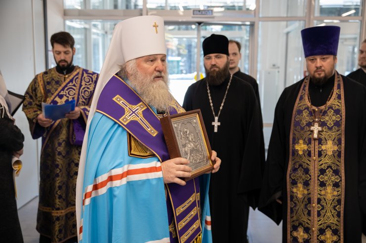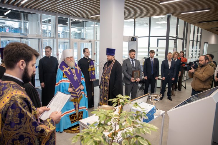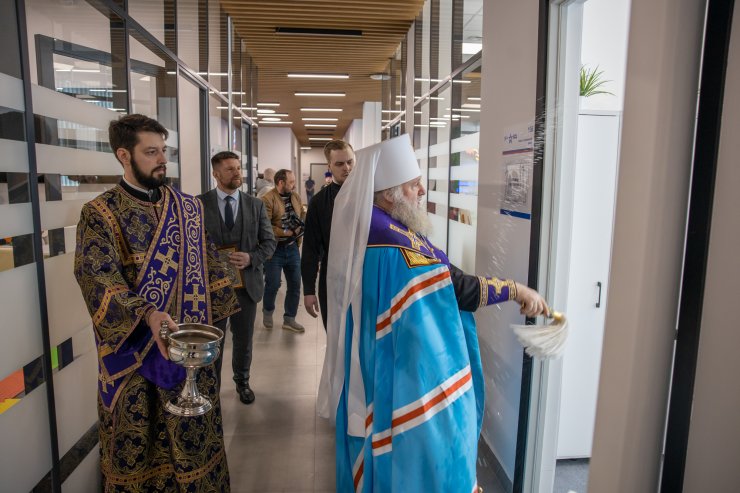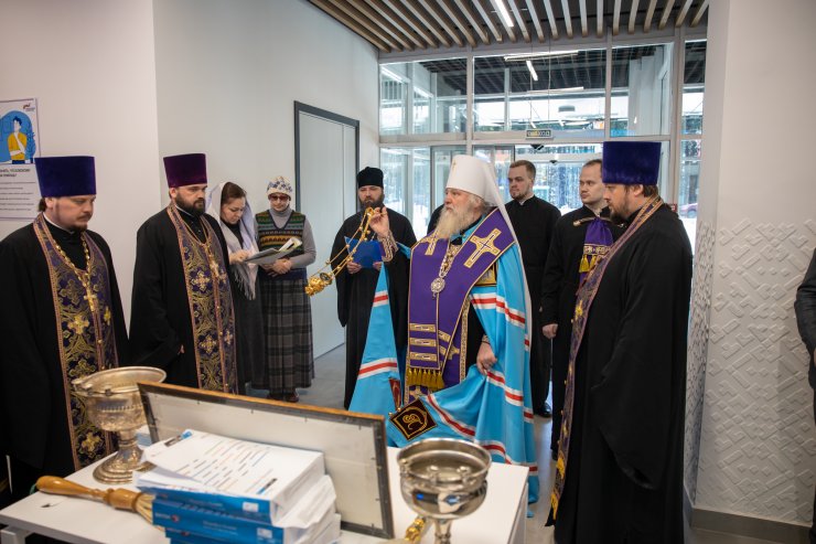 «Мы собрались здесь сегодня в этом здании для того, чтобы испросить у Господа благословения, чтобы Господь ниспослал бы Святаго Духа на всех трудящихся здесь во благо ближних своих. «Нет большей славы, как кто душу положит за други своя», — сказано в Священном Писании. И вот наше служение с вами, в том числе, является сегодня именно служением ближним, всем, кто нуждается в нашей помощи. И, конечно, хотелось бы, чтобы Господь содействовал, сопутствовал нам в нашем доброделании, для которого мы и это здание обрели, и всем, кто сегодня собрался трудиться здесь, и помогать, и служить ближним нашим».