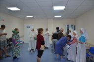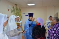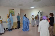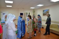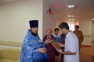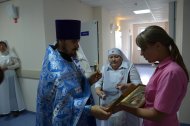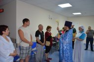 31 августа в день празднования иконы Божией Матери «Всецарица», которая имеет благодать исцелять страшнейшую из болезней современного человечества – онкологию, иерей Владимир, клирик храма «Знамение», и сестры милосердия города Ханты-Мансийска в часовне в честь Великой княгини Елисаветы и инокини Варвары Окружной клинической больницы отслужили молебен с чтением акафиста иконе Божией Матери «Всецарица», посетили пациентов Окружного онкологического центра. Соборной молитвой во всех отделениях Онкоцентра вместе со страждующими они обратились к Божией Матери об исцелении и помощи, окропили святой водой, подарив каждому маленькую икону с образом «Всецарицы». О.Владимир передал медперсоналу каждого отделения Онкоцентра иконы Божией Матери «Всецарица», подчеркнул, что тяжело не только пациентам, тяжело и врачам, которые совершают подвиг своего служения, всем необходима духовная поддержка и помощь. Божия Матерь являет Свою неизреченную милость и подает исцеление всем, кто с верой и любовью обращается к Ней в молитве пред Ее прославленным образом.