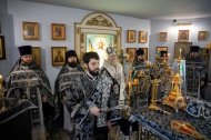 Его Высокопреосвященству сослужили: благочинный Ханты‑Мансийского благочиния иерей Димитрий Губанищев, секретарь Ханты‑Мансийской епархии игумен Антоний (Кирпичев), настоятель Знаменского храма иерей Леонид Бартков, клирики храма иерей Андрей Зотов, иерей Тарасий Борозенец и диакон Алексий Полянцев; диаконский чин возглавил диакон Даниил Матвеев. Совершение Литургии Преждеосвященных Даров архипастырем стало для прихода видимым свидетельством церковного единства и общей молитвы всей епархии.