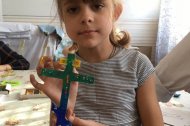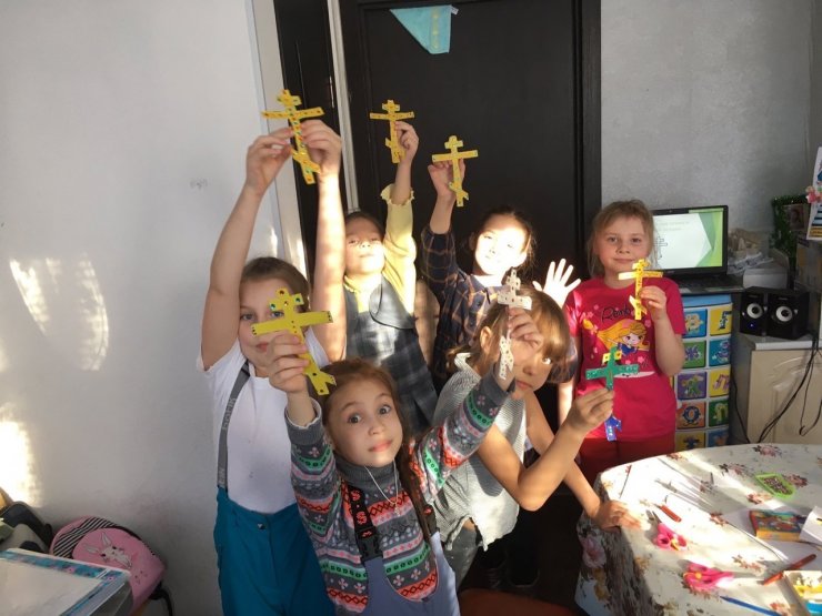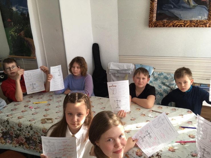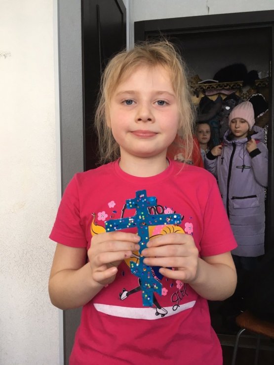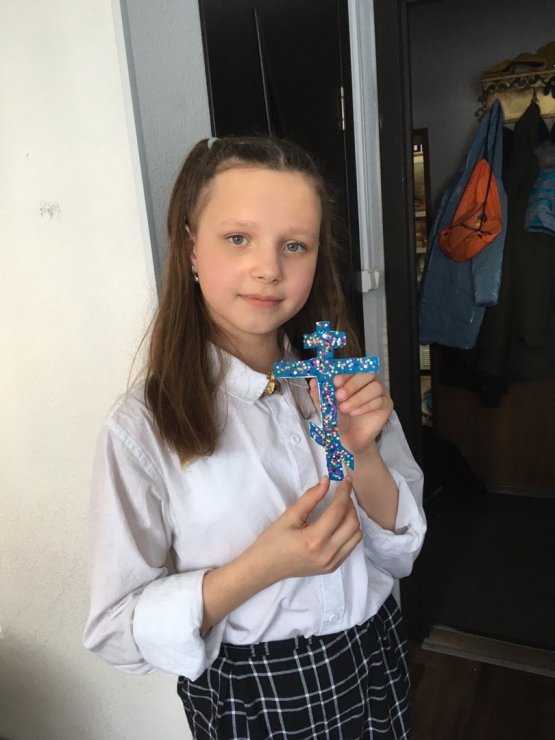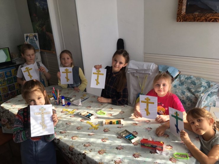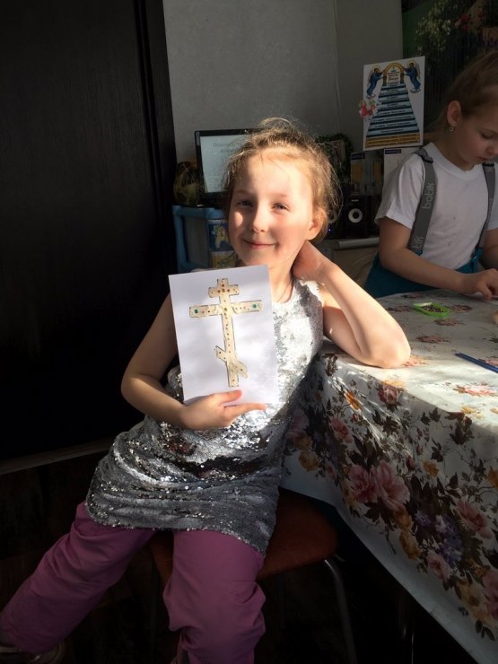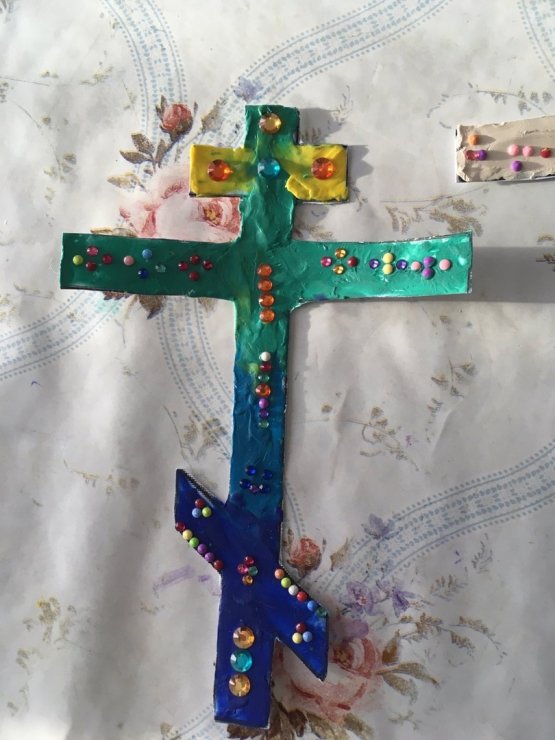 На Законе Божием разбирали символ следующей недели Крест, делали поделки в виде креста. Со старшей группой выполняли задание по символике изображенной на Голгофском кресте.