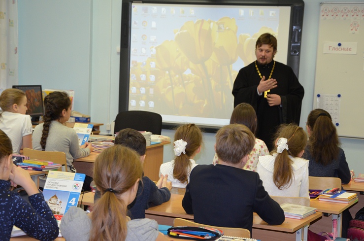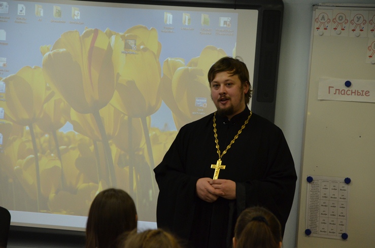 25 ноября 2016 года настоятель Знаменского храма иерей Леонид Бартков провёл урок по Основам Православной Культуры в Средней Общеобразовательной школе №1 им. Созонова Юрия Георгиевича г. Ханты-Мансийска для учеников четвёртого класса. Урок увенчался диалогом детей с батюшкой на тему нравственного поведения.