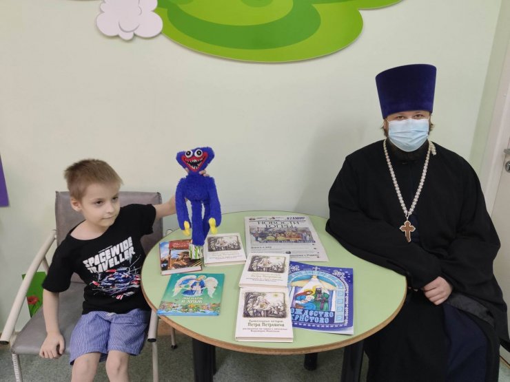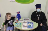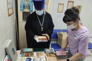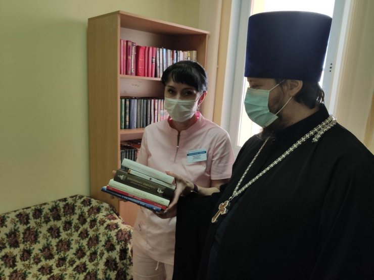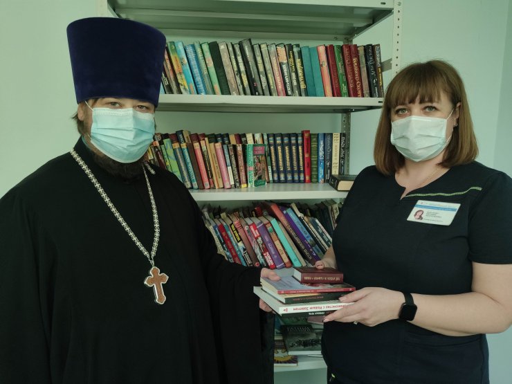 Всего было собрали около 200 книг, в том числе и детская литература, раскраски для малышей. Книжные стеллажи пополнились в педиатрическом, терапевтическом и нефрологическом отделениях, в радиотерапии онкологического центра. К слову, здесь в прошлом году в марте была открыта молельная комната в честь иконы Пресвятой Богородицы "Всецарица". И православные книги станут настоящим путеводителем для тех онкобольных, кто ищет дорогу к Богу внутри себя. Здесь это востребовано, пожалуй, как нигде в больнице. В подтверждение хочу отметить, что священнослужителя уже ждали пациенты. Хотели поговорить и исповедоваться.