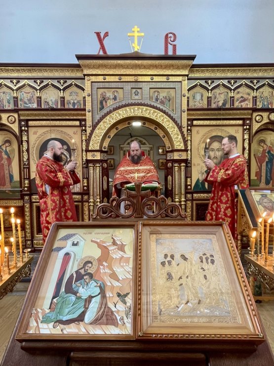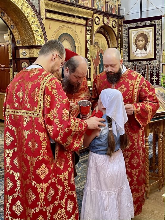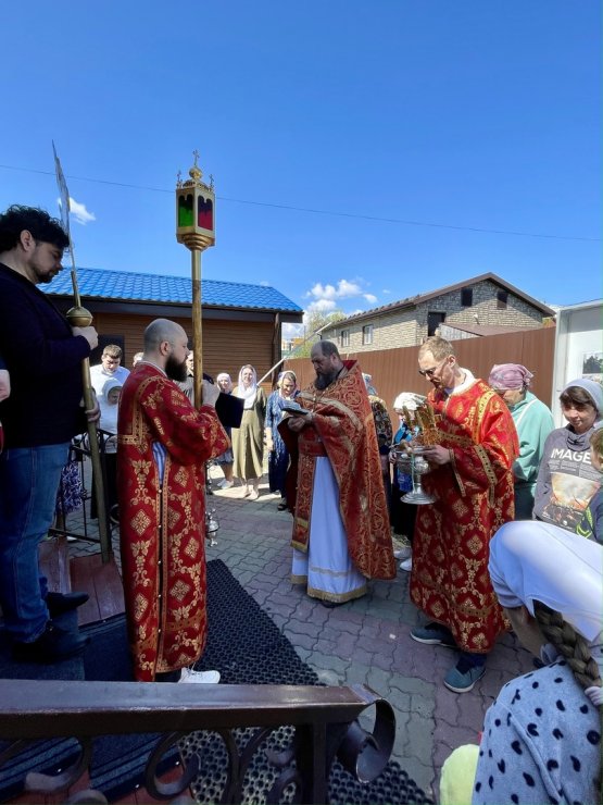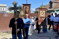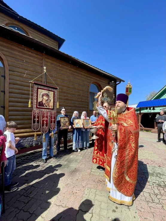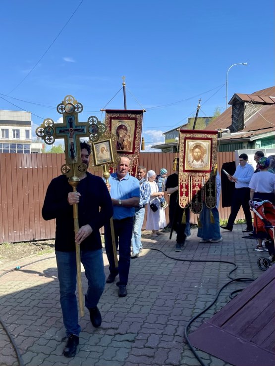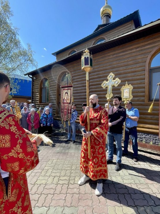 В этот праздничный день (9 июня) клирик Знаменского храма иерей Тарасий Борозенец совершил Божественную Литургию, в завершении которой состоялся крестный ход.