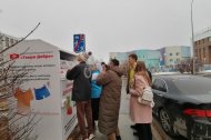 В гуманитарном центре гостей встречала заведующая Ирина Колычева. Ирина Геннадьевна провела короткую экскурсию. Больше всего иностранца заинтересовал контейнер для благотворительного сбора одежды.