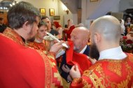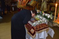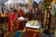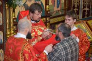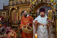 В конце службы иерей Леонид Бартков освятил особый хлеб – артос. Всю светлую седмицу артос будет пребывать на почетном месте в храме в открытых Царских вратах, и, как великую святыню, его будут носить на крестных ходах. В субботу Светлой седмицы, после совершения особого чина раздробления артоса его раздадут верующим.