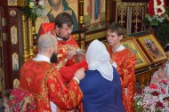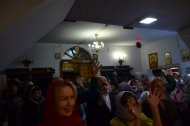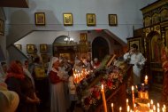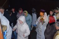 Настоятель Прихода иерей Леонид Бартков, в служении клириков храма: иерея Андрея Зотова, иерея Константина Мемячкина и иерея Тарасия Борозенца, совершил Полунощницу, крестный ход, Пасхальную заутреню и Божественную Литургию святителя Иоанна Златоуста.