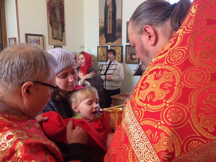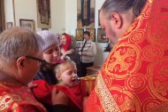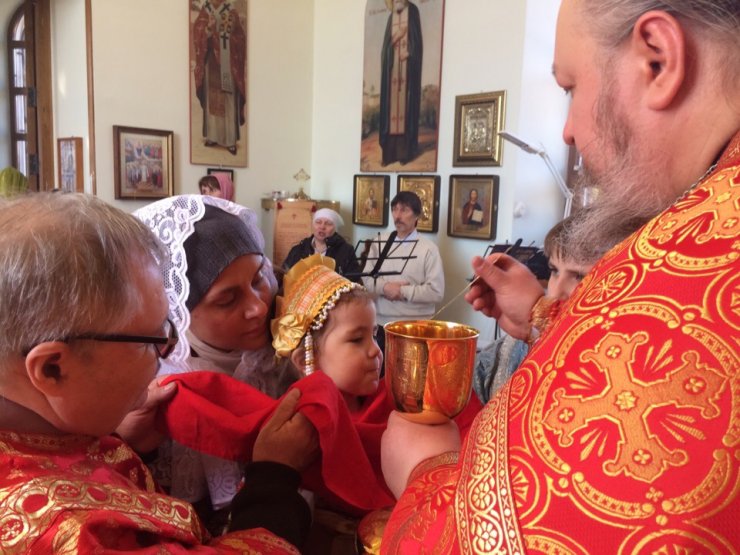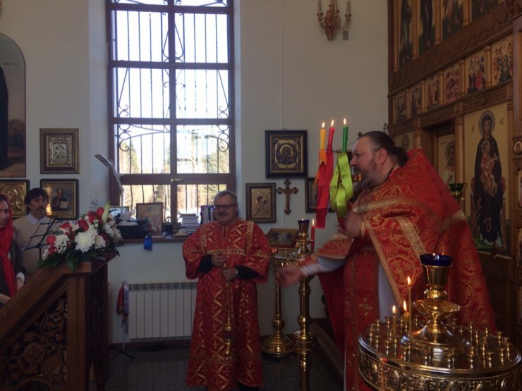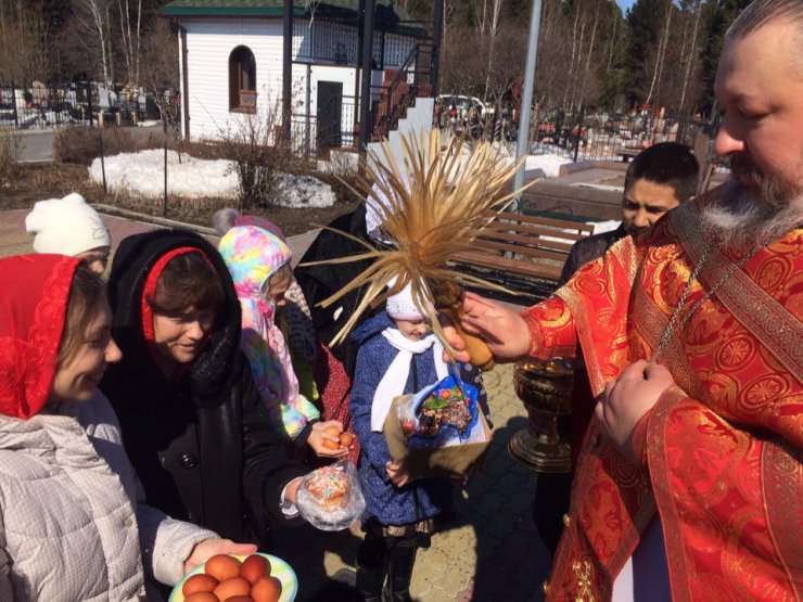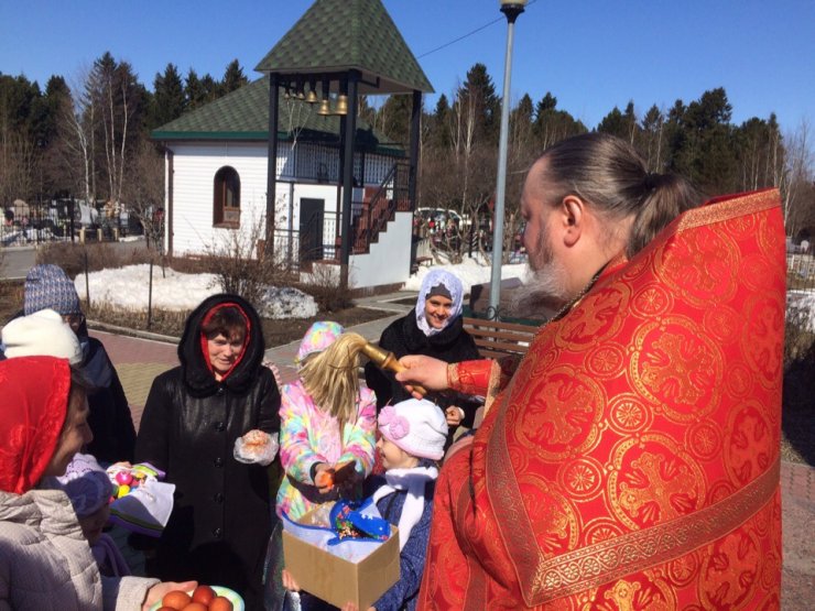 По окончании богослужения отец Константин обратился ко всем собравшимся со словами пасхального приветствия, после чего поздравил всех приобщившихся Святых Христовых Таин, и зачитал поздравление Митрополита Ханты-Мансийского и Сургутского Павла.
