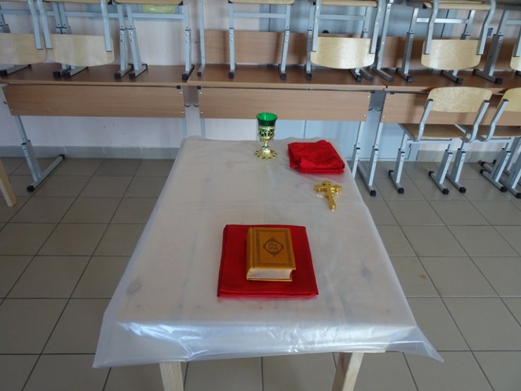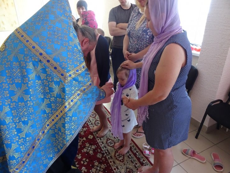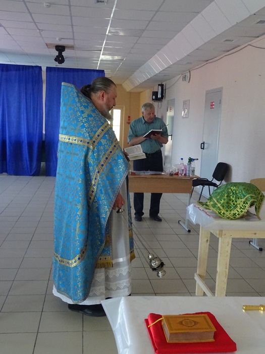 В поселке отец Константин отслужил первую Божественную Литургию. Перед Литургией все желающие могли исповедаться. В Таинствах Исповеди и Евхаристии приняли участие 7 человек. После Литургии было совершено Таинство Крещения. Перед Крещением была проведена огласительная беседа, в которой священник рассказал об основах Православной веры. Крещение приняли 10 человек. Так же была организована встреча священника с учащимися летнего трудового лагеря на которой батюшка провел беседу об основах Православной веры, о духовной борьбе и понятии подвига для христианина в мирное время, ответил на вопросы ребят. Также перед подростками выступил полковник запаса Дмитрий Петрович Чередов. Он рассказал ребятам об особенностях воинской службы, о том как помогает воину вера в Бога, о патриотизме и о христианском подвиге на войне.