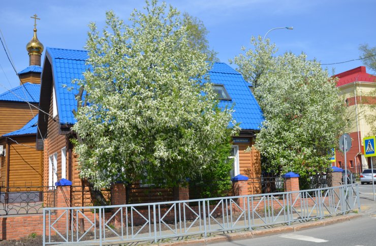 В день памяти Николая Чудотворца символичность ещё одна была – возле храма ярко зацвела черёмуха, очень красивое зрелище…