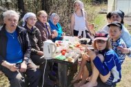 По окончании работ, преисполненные радости от выполненных задач, вкусно перекусили на свежем воздухе.