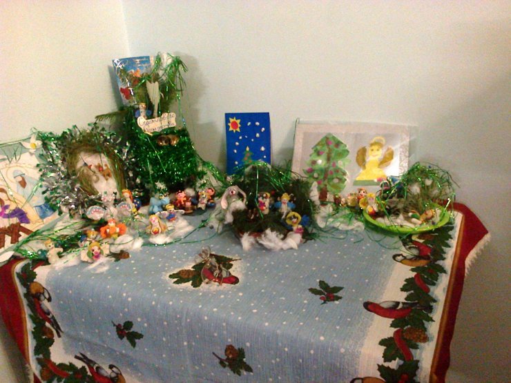 Дети и педагоги учебно-воспитательной группы при храме в честь иконы Божией Матери «Знамение» г. Ханты-Мансийска с радостью готовились к встрече Рождества Христова. С детьми разучивались праздничные стихи, тропари и колядки, проводились занятия по изготовлению поделок, посвящённых рождению Иисуса Христа. 8 января педагоги и воспитанники группы посетили Центр помощи детям, оставшимся без попечения родителей «Радуга». Вниманию собравшихся была представлена музыкально-литературная композиция «Рождественская звезда», активными участниками которой стали и дети центра. Дети водили праздничный хоровод, читали стихи, пели. И юные артисты, и их зрители порадовались празднику и общению, а также и традиционным рождественским подаркам.