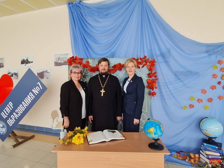 5 октября настоятель Знаменского храма города Ханты-Мансийска иерей Леонид Бартков посетил МБОУ ЦО № 7 им. Дунина-Горкавича А.А.
