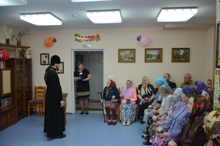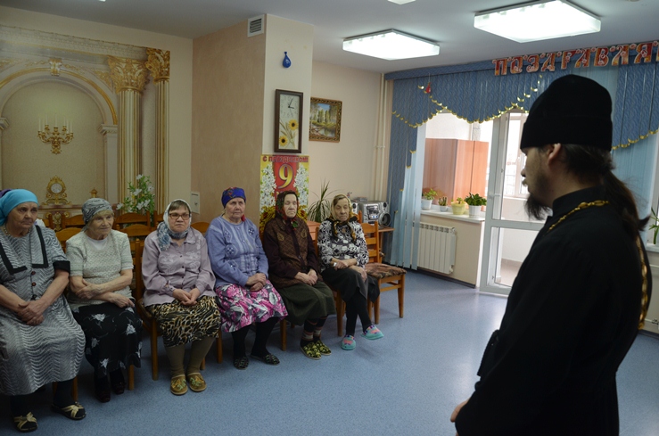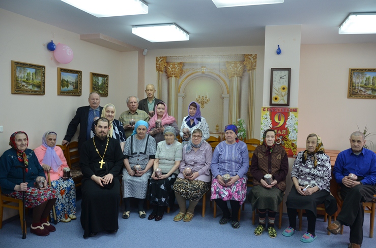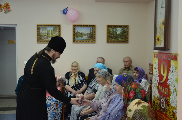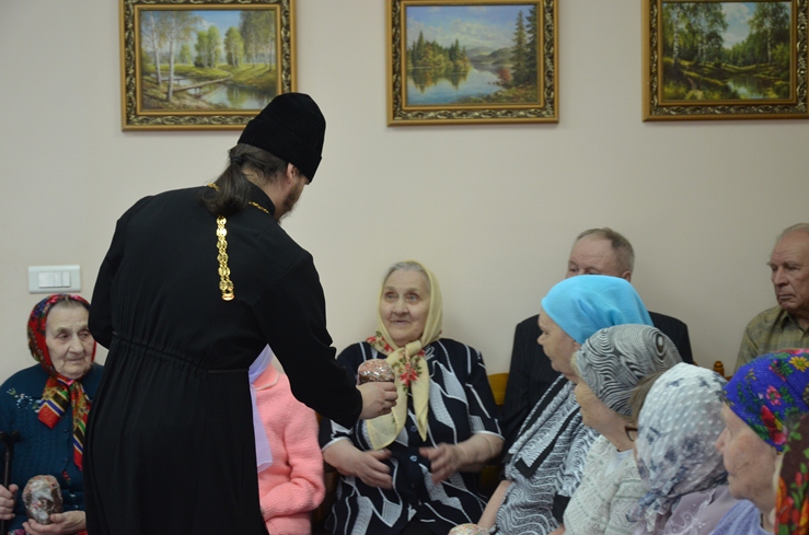 17 апреля священник Прихода храма в честь иконы Божией Матери «Знамение» г. Ханты-Мансийска отец Владимир Василенко посетил «Дом ветеранов» БУ ХМАО-Югры и поздравил с Пасхой Христовой ее жителей и вручил каждому праздничный кулич.