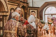 По окончании все молящиеся за богослужением совершили уставное поклонение Кресту.
