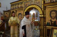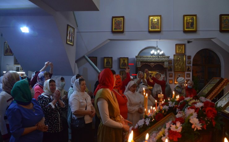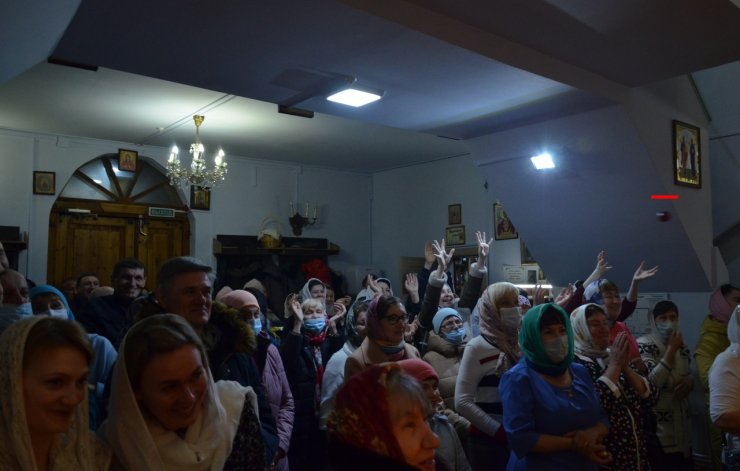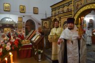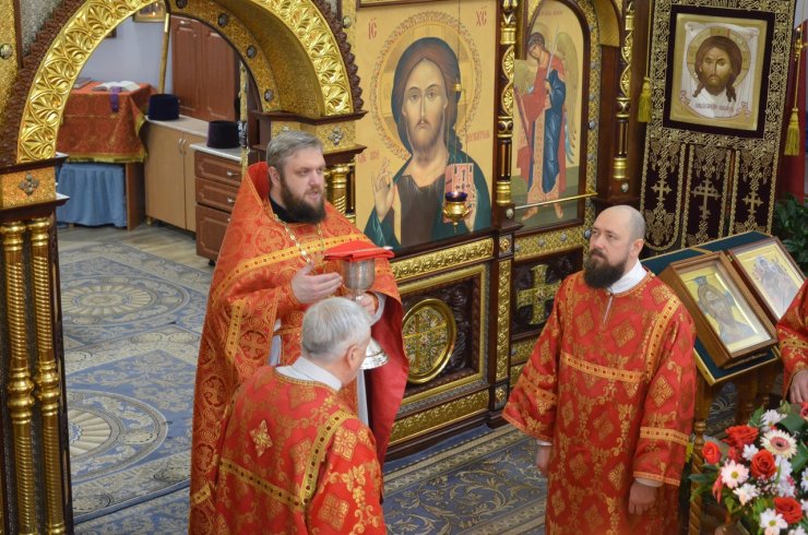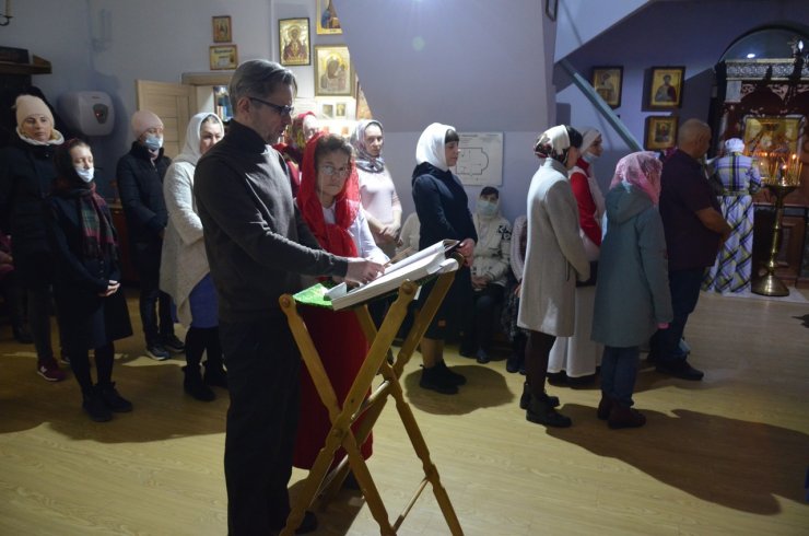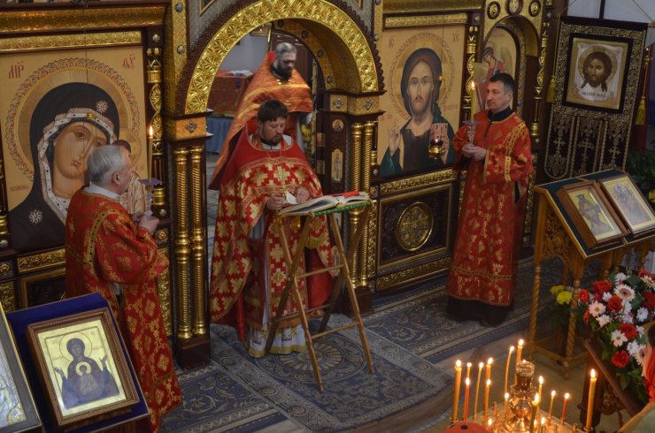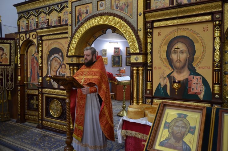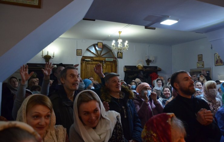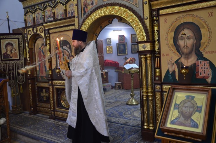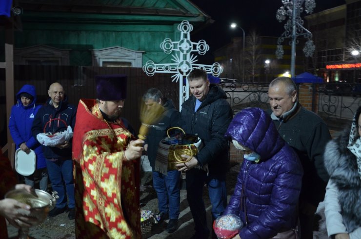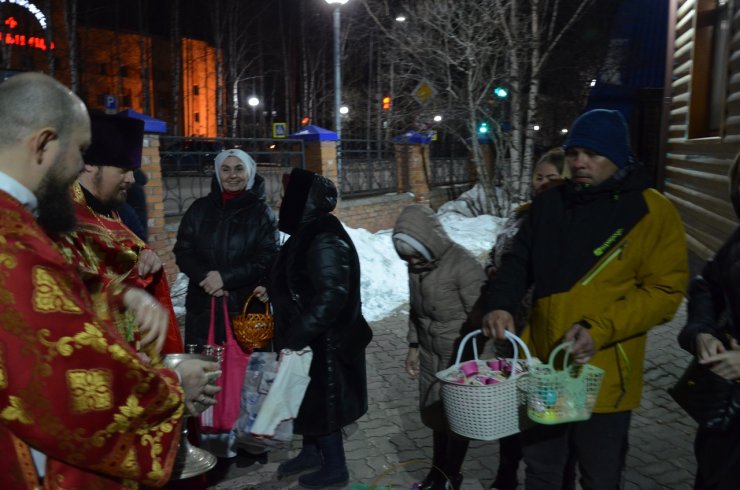 Во время богослужения отец Леонид и отец Андрей зачитали Пасхальные послания Святейшего Патриарха Московского и всея Руси Кирилла и Митрополита Ханты-Мансийского и Сургутского Павла.
