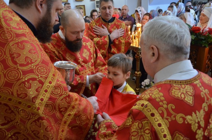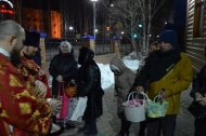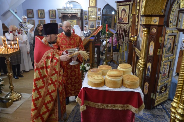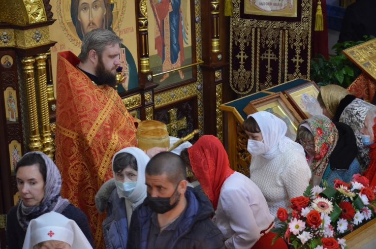 После торжественных богослужений и в течение дня священники храма освящали принесенные прихожанами куличи, яйца и другую праздничную снедь.