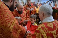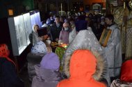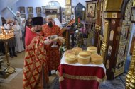 Завершилась ночная Божественная Литургия освящением артоса.