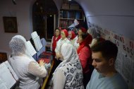 Ровно в полночь священнослужители в праздничных облачениях в алтаре трижды пропели стихиру: