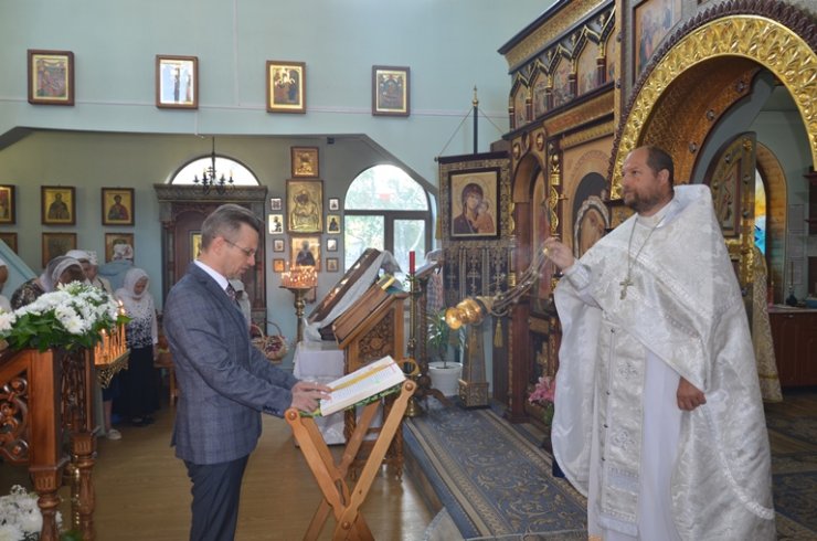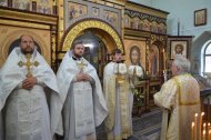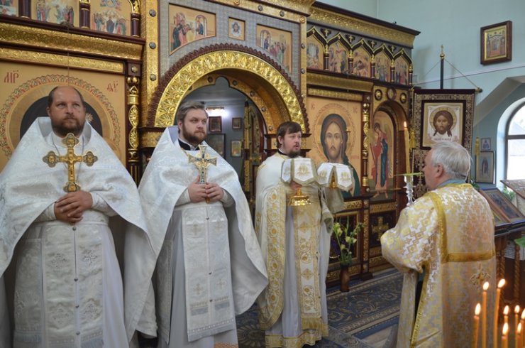 По окончании Литургии иерей Тарасий Борозенец произнес проповедь о Преображении Господнем и поздравил всех с праздником.