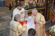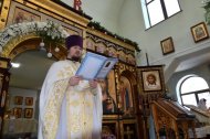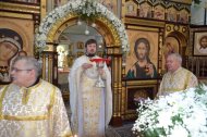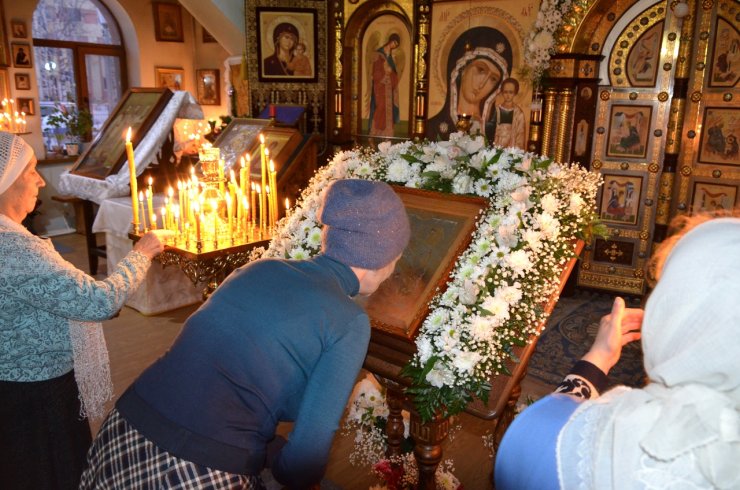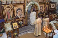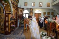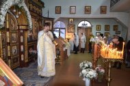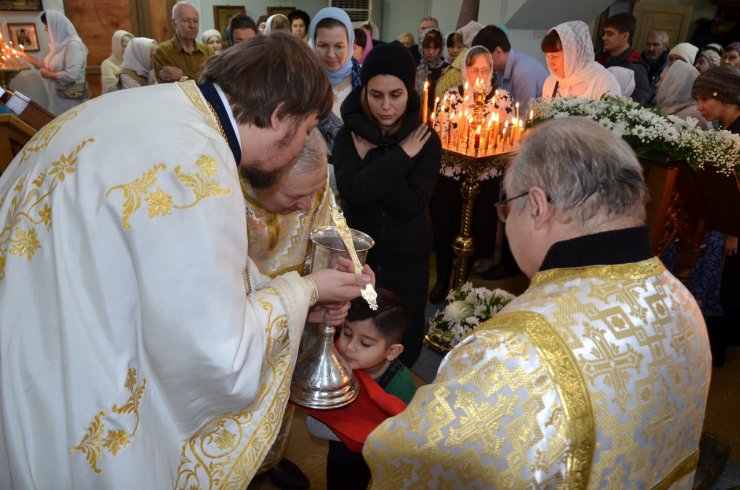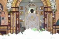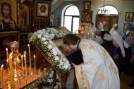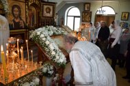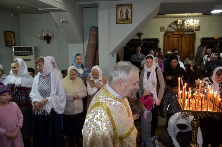 На праздничном богослужении собралось большое количество прихожан (более 100 человек).