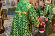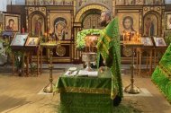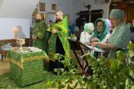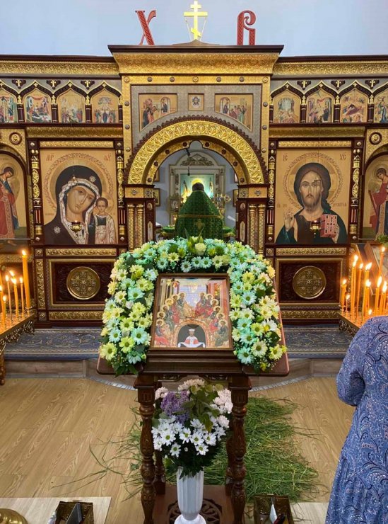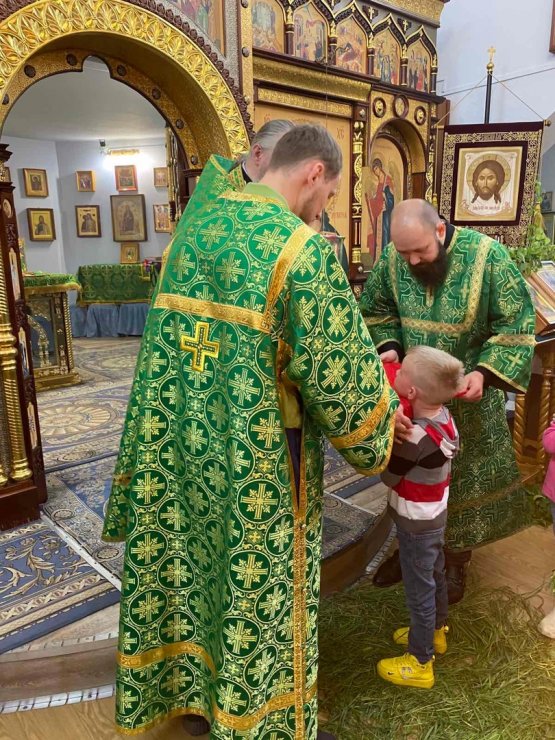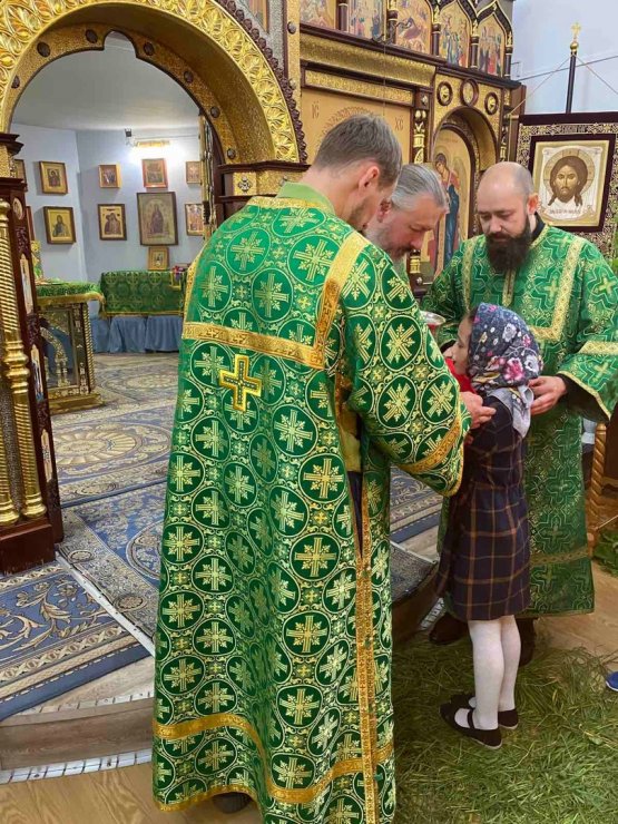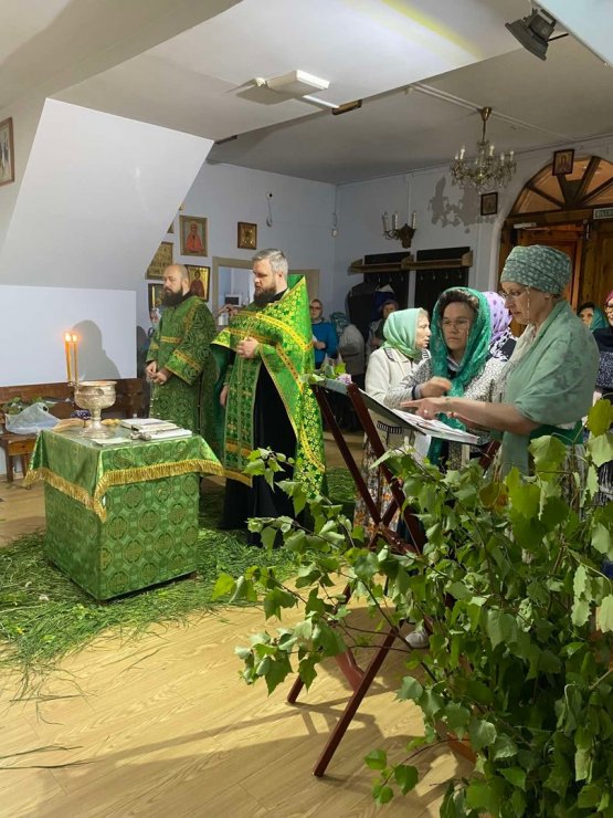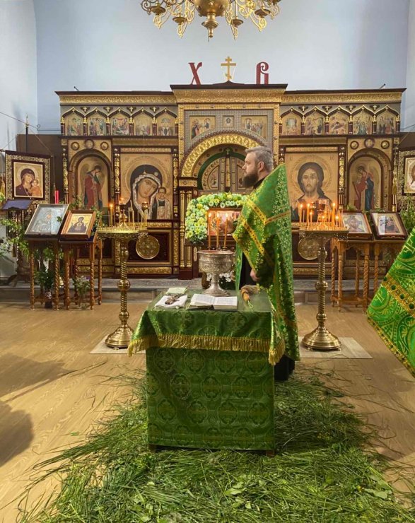 В честь праздника храм был украшен березовыми ветками, а пол был устлан свежескошенной травой.