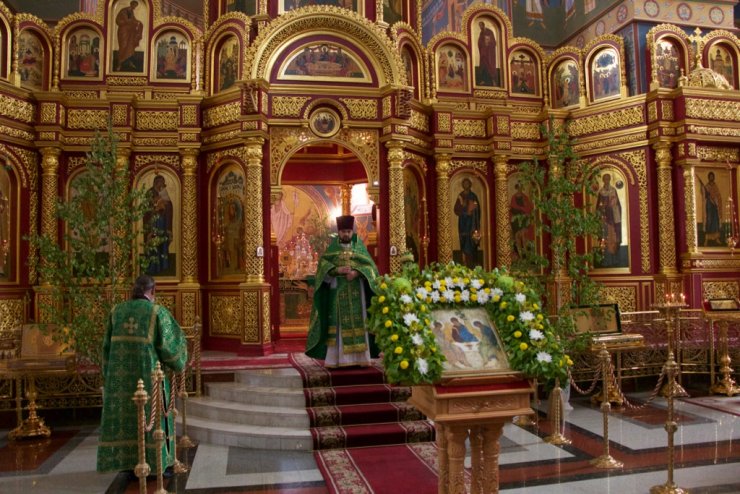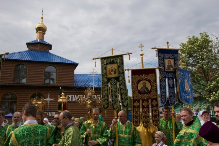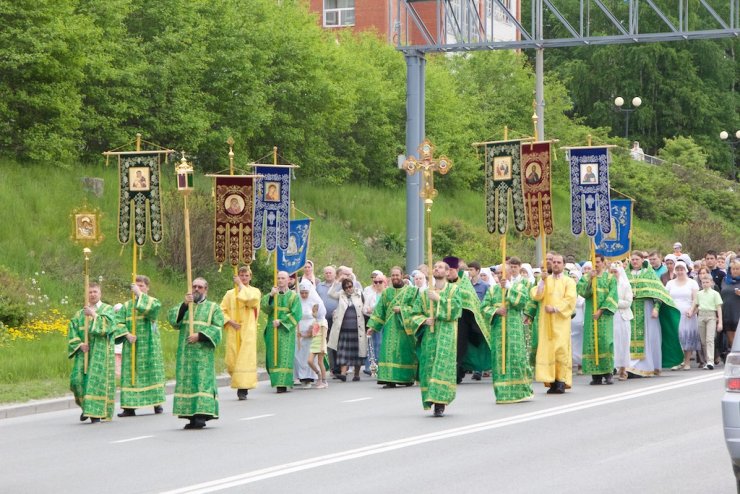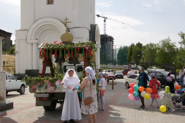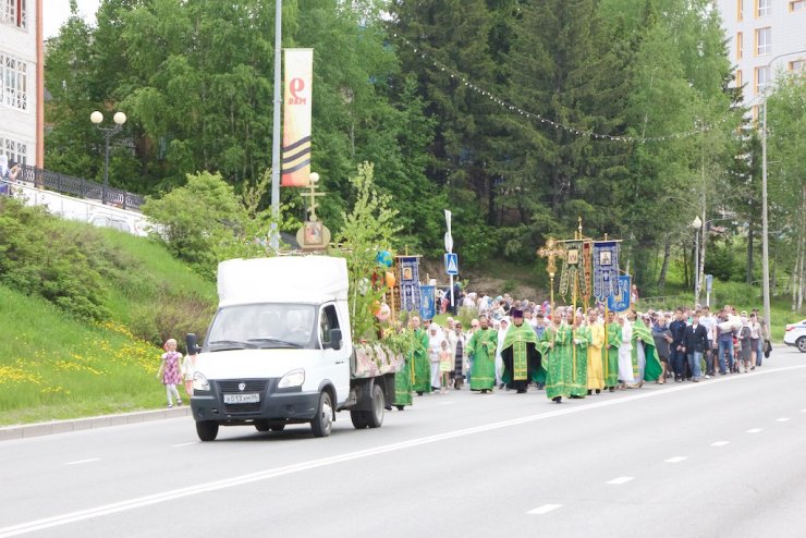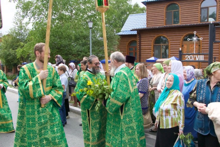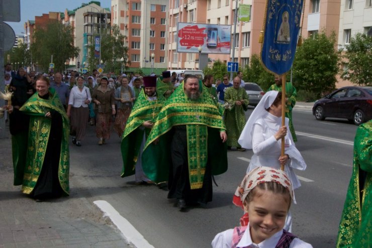 31 мая в Праздник Святой Троицы, в Кафедральном Воскресенском Соборе Ханты-Мансийска отслужили Божественную литургию, возглавил которую председатель отдела религиозного образования и катехизации иерей Димитрий Губанищев в сослужении клириков Собора. После коленопреклоненных молитв был совершен праздничный крестный ход духовенства и прихожан всех храмов по центральным улицам города во главе с благочинным Ханты-Мансийского благочиния протоиереем Сергием Кравцовым. В Знаменском храме Ханты-Мансийска колонну крестного хода пополнили его настоятель, председатель отдела социального служения и благотворительности епархии иерей Леонид Бартков с многочисленными прихожанами.
