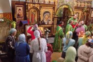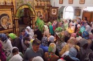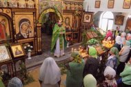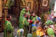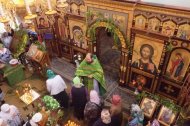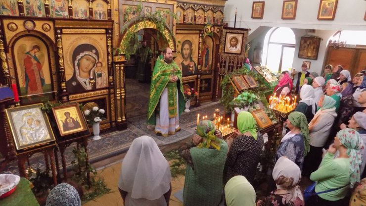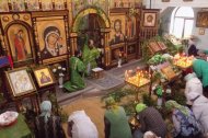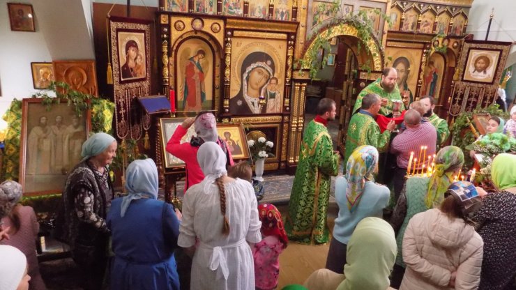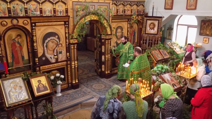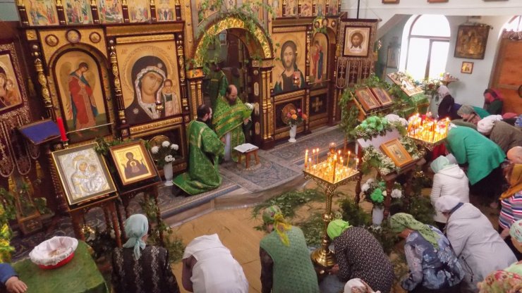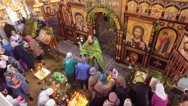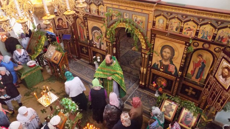 В честь праздника храм был красиво украшен березовыми ветвями и цветами, а пол храма был щедро устлан свежескошенными травами.