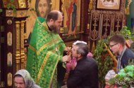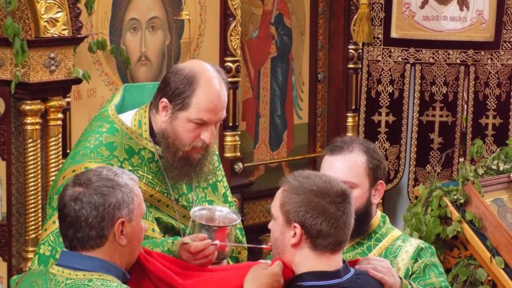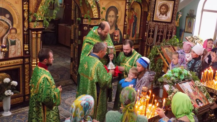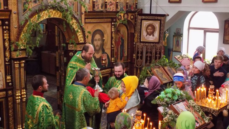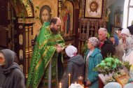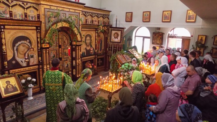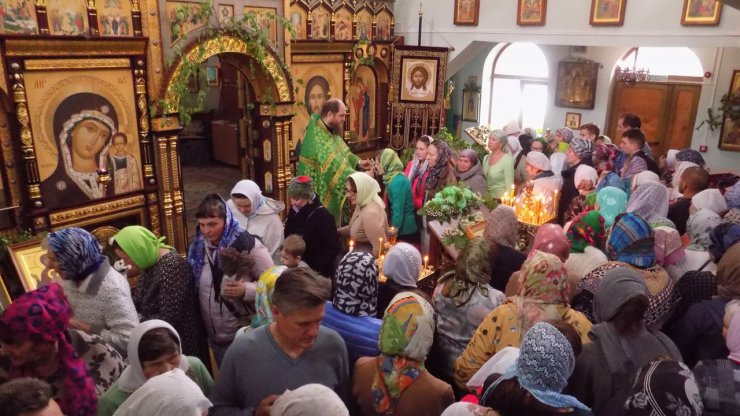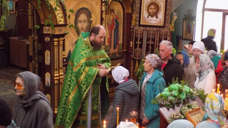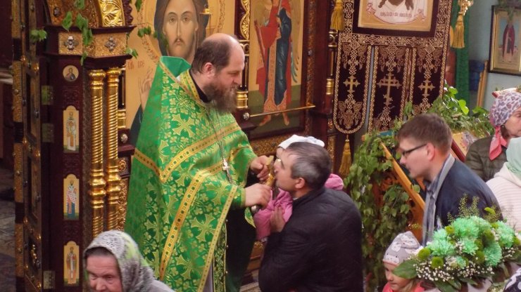 Верующие прихожане пришли в этот день помолиться о даровании благодати Духа Святого и освятить ветви и травы, символизирующие жизнь. Батюшка поздравил прихожан (около 150 человек) с праздником, пожелав крепости веры, чистоты помыслов и благоденствия.