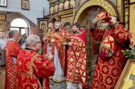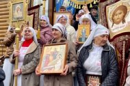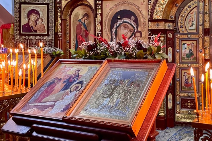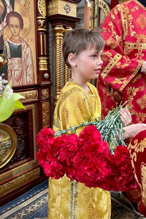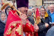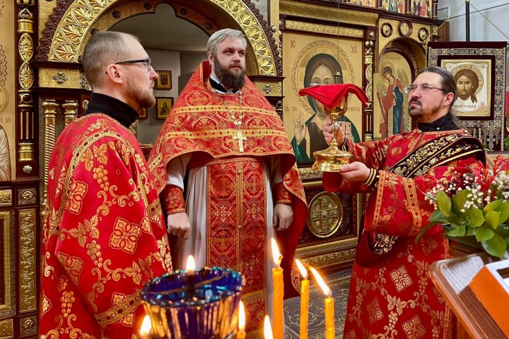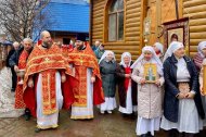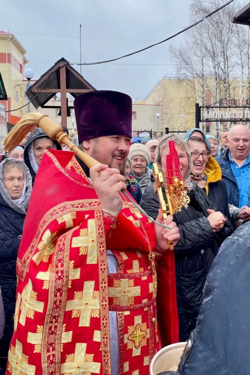 В этот праздничный день настоятель Знаменского храма иерей Леонид Бартков в сослужении клириков храма иерея Андрея Зотова, иерея Тарасия Борозенца и диакона Алексия Полянцева совершил Божественную Литургию и Крестный ход вокруг храма.
