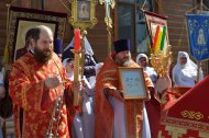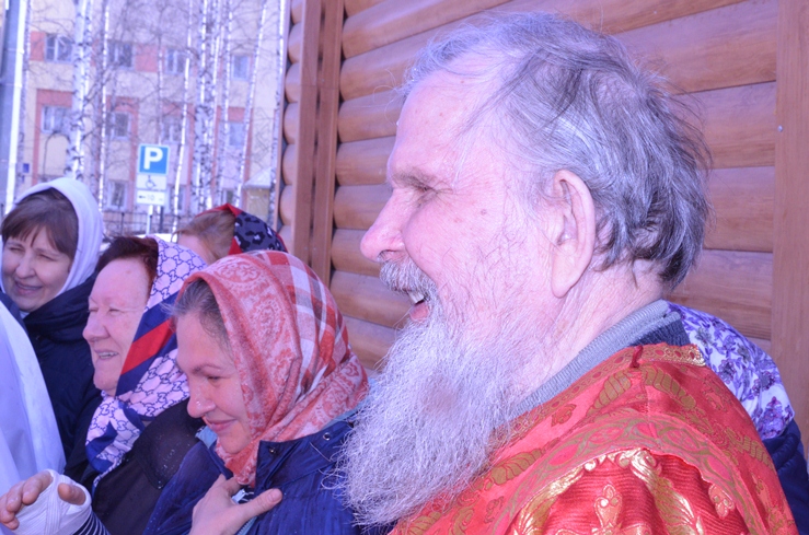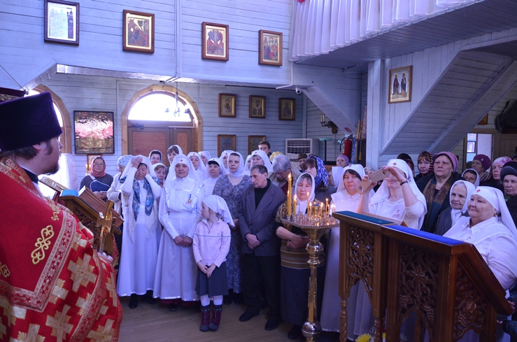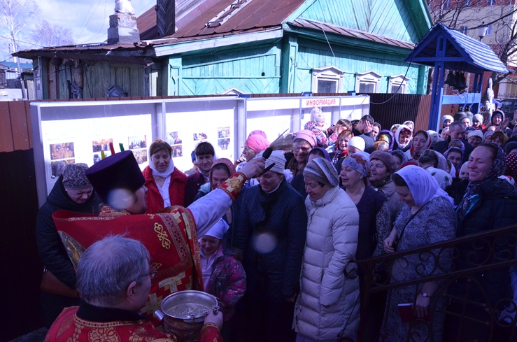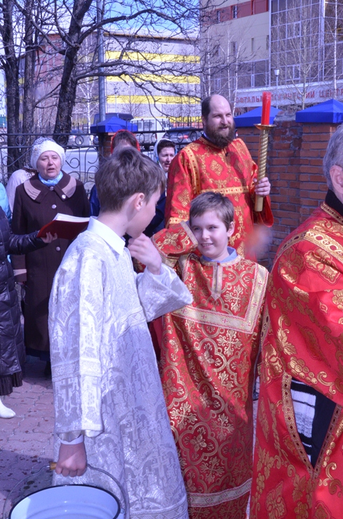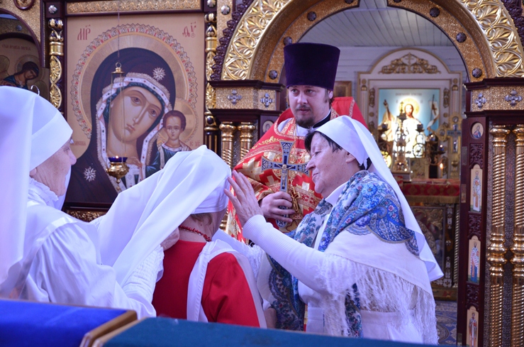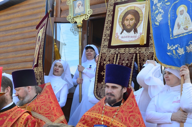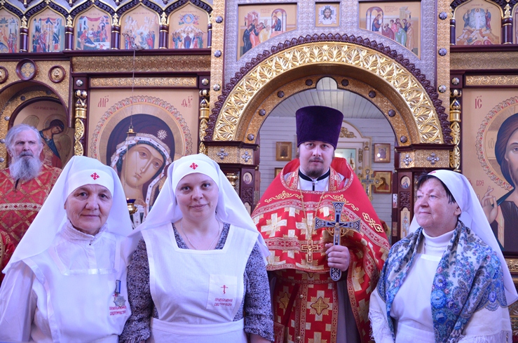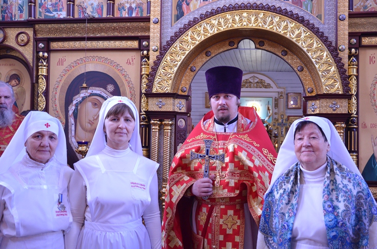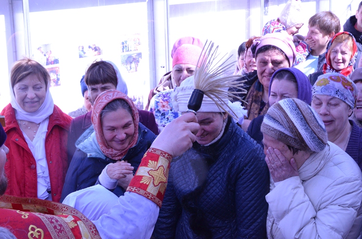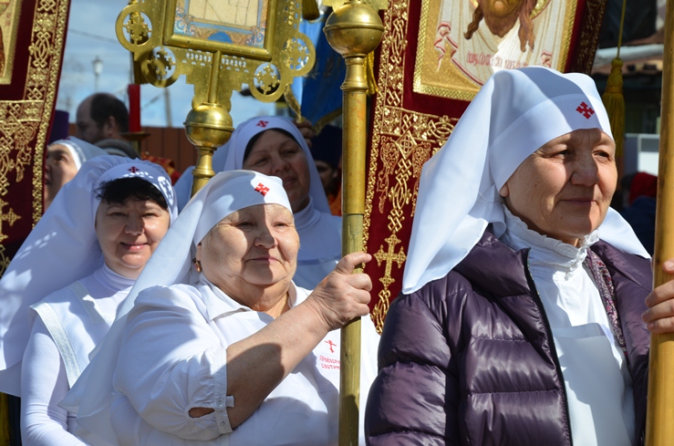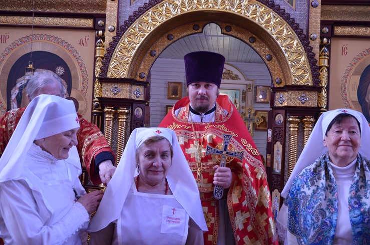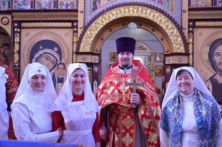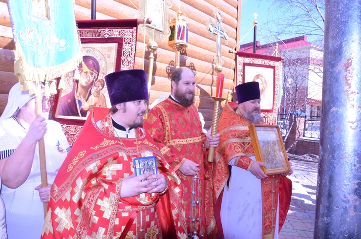 По заамвонной молитве прошёл традиционный крестный ход вокруг храма, сестры милосердия несли впереди хоругви с крестом, символизируя тем самим и самих Жён-Мироносиц. По отпусту настоятель торжественно вручил сестриченскую одежду четырем из новобранцев сестричества при пении особого тропаря. Всем молящимся за богуслежинием женщинам, девушкам и девочкам были вручены цветочек и сладкий подарок в виде шоколадки.