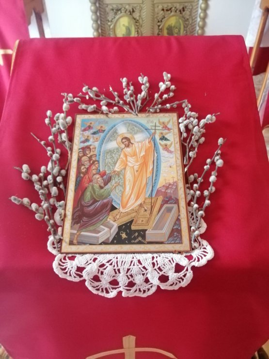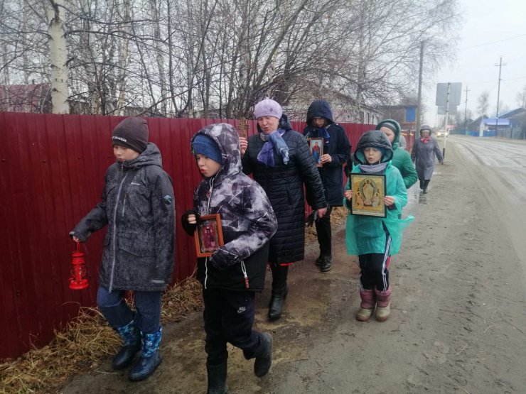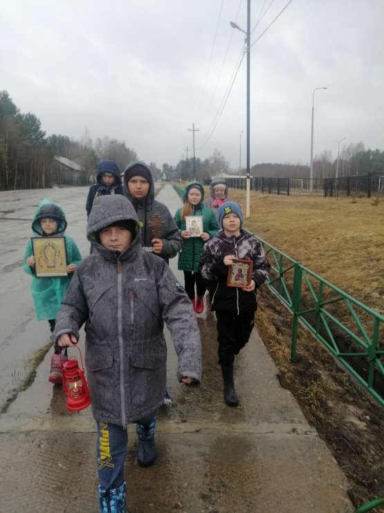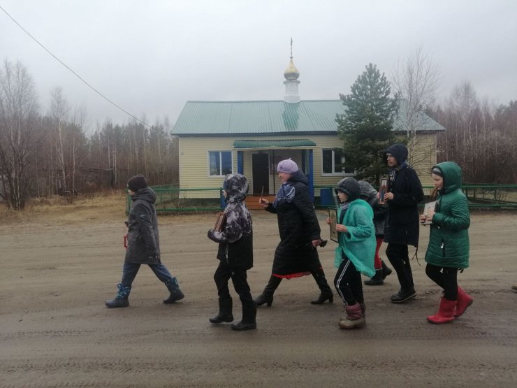 1 мая, в праздник Светлого Воскресения Христова в поселке Выкатном состоялось праздничное поздравление детей воскресной школы, после чего, несмотря на непогоду, прошел Крестный ход под звуки Пасхальных песен.