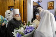 После богослужения митрополит Павел обратился к собравшимся с архипастырским словом: «Дорогие отцы, братья и сестры, позвольте от сердца души поблагодарить всех за общие молитвы и поздравить с престольным днём! Сегодня мы отмечаем память иконы Божьей Матери «Знамение». Храму, который посвящен Царице Небесной, исполнилось 30 лет со дня образования. Я всех сердечно поздравляю с этим юбилеем, с праздником Царицы Небесной. Хотел в знак нашего сегодняшнего богослужения, подарить Евангелие для этого храма на молитвенную память!»