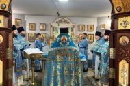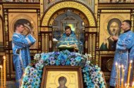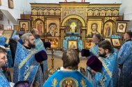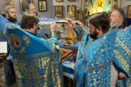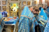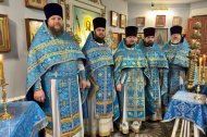 Праздничную Божественную литургию в храме возглавил настоятель иерей Леонид Бартков. Его Преподобию сослужили клирики храма: иерей Андрей Зотов, иерей Константин Мемячкин, иерей Тарасий Борозенец, ключарь храма в честь Покрова Пресвятой Богородицы иерей Димитрий Губанищев. Пел хор Знаменского храма.