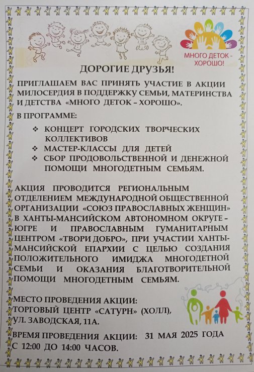 ПРИГЛАШАЕМ ПРИНЯТЬ УЧАСТИЕ В АКЦИИ МИЛОСЕРДИЯ "МНОГО ДЕТОК - ХОРОШО"