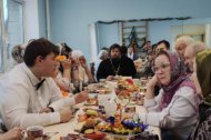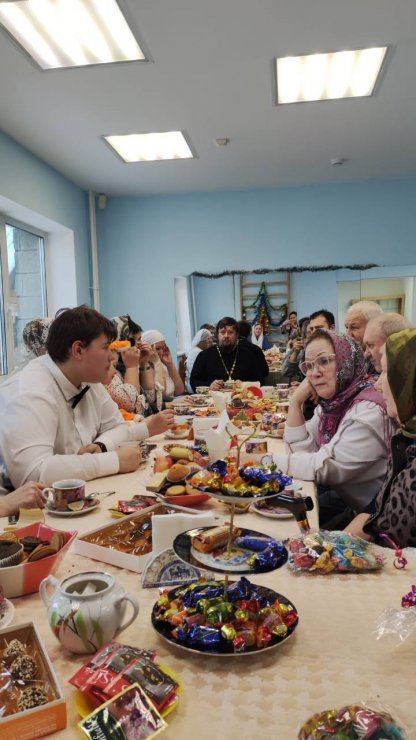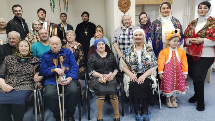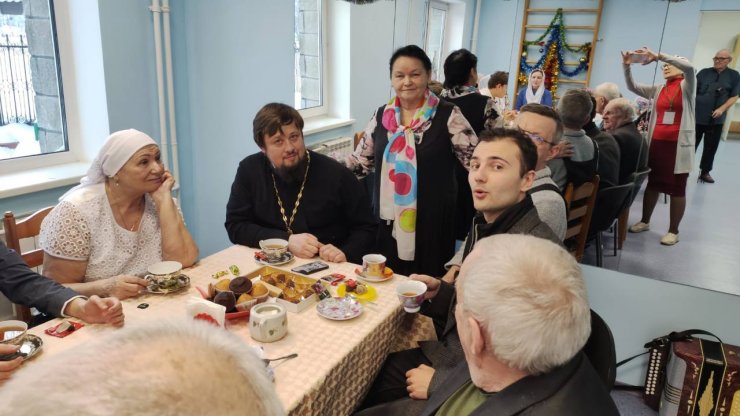 Актовый зал был наполнен проживающими в нем одинокими людьми в ожидании и трепета от предстоящей встречи. Это были люди, чьи лица хранят историю целой их жизни, историю их радостей и печалей, побед и потерь. Со своими голосами, батюшка вместе с хором, вошли в этот зал – как луч света в зимний день.