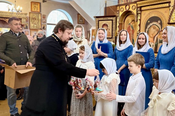 Настоятель храма иерей Леонид Бартков искренне поблагодарил педагогов Шустову Галину Николаевну и Соловьеву Юлию Ивановну, участников концерта за подаренное душевное тепло и вручил каждому сладкий подарок.