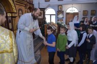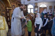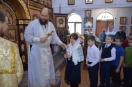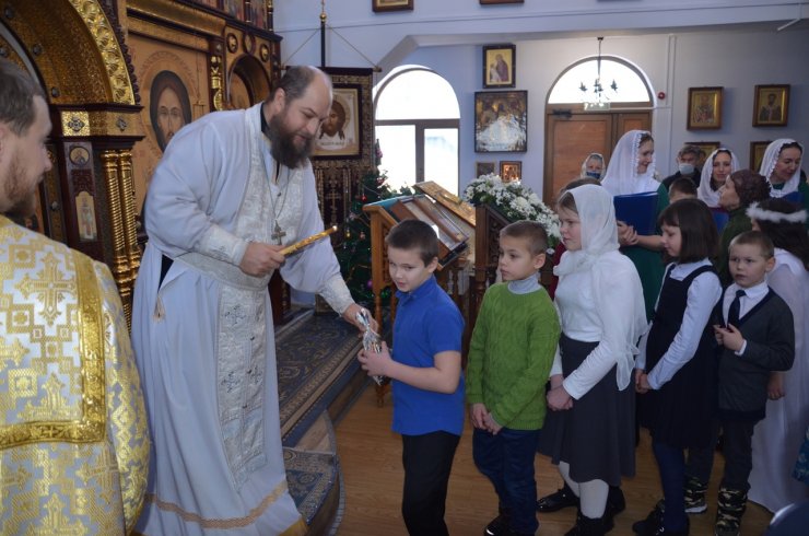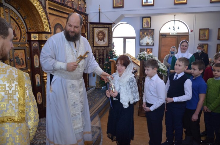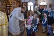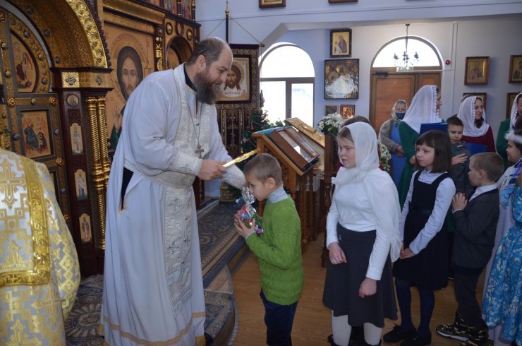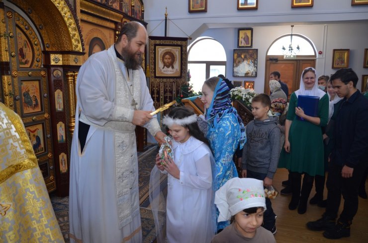 Ну и какой же праздник без подарков? Каждый ребенок получил сладкий подарок из рук клирика храма иерея Тарасия Борозенца.