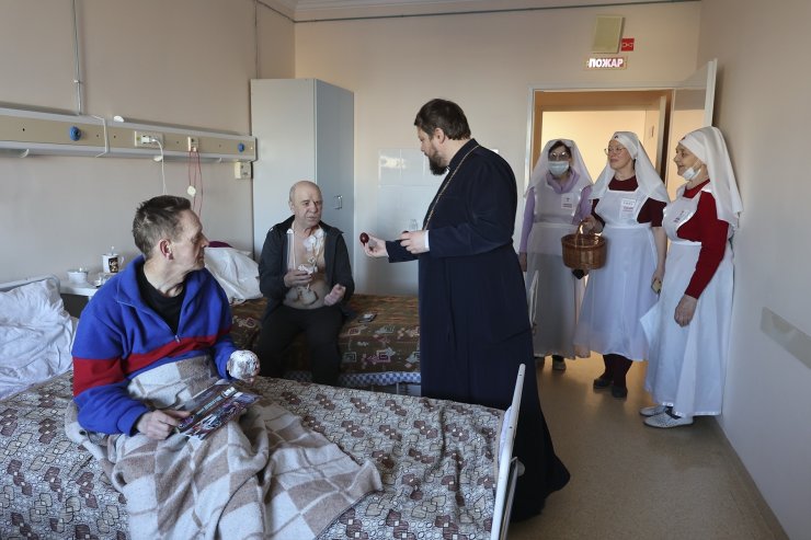 Под сводами больничных коридоров пронзительно и утешительно звучали слова пасхального тропаря: «Христос воскресе из мёртвых, смертию смерть поправ…». Для многих лежачих пациентов, которые лишены возможности прийти в храм, эти несколько минут общего пения и молитвы стали главным богослужением Пасхи - их личной встречей со Воскресшим Христом там, где они находятся.