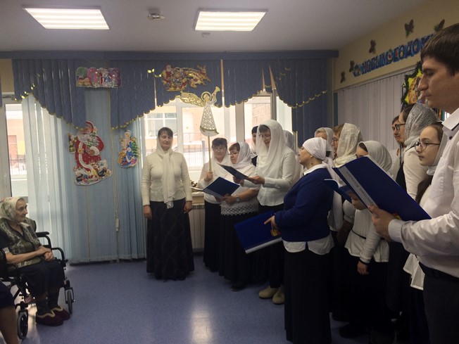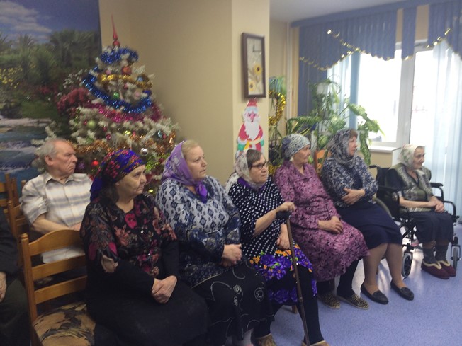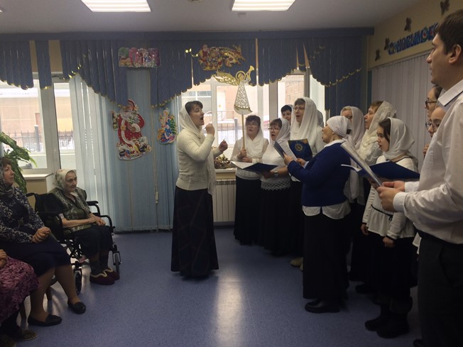 14 января 2018 года настоятель Знаменского храма г. Ханты-Мансийска иерей Леонид Бартков в сопровождении церковного хора посетили одиноких и престарелых людей социального дома «Ветеран».