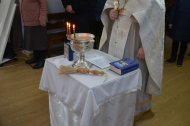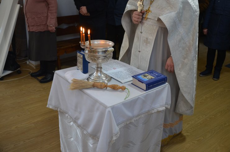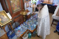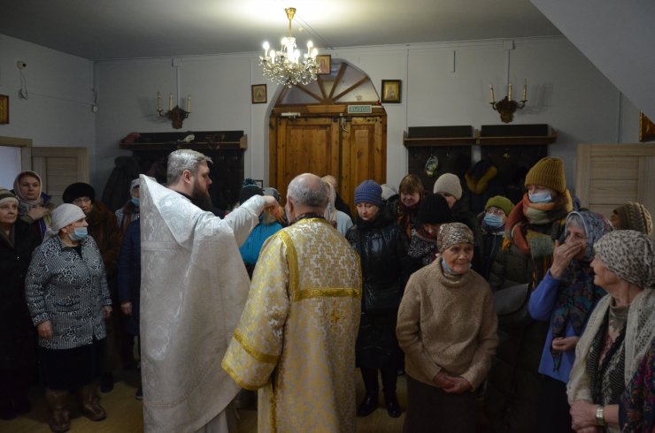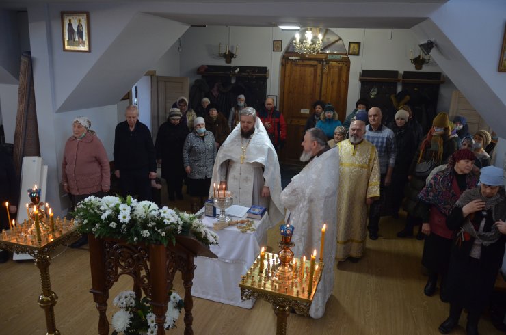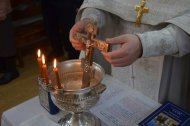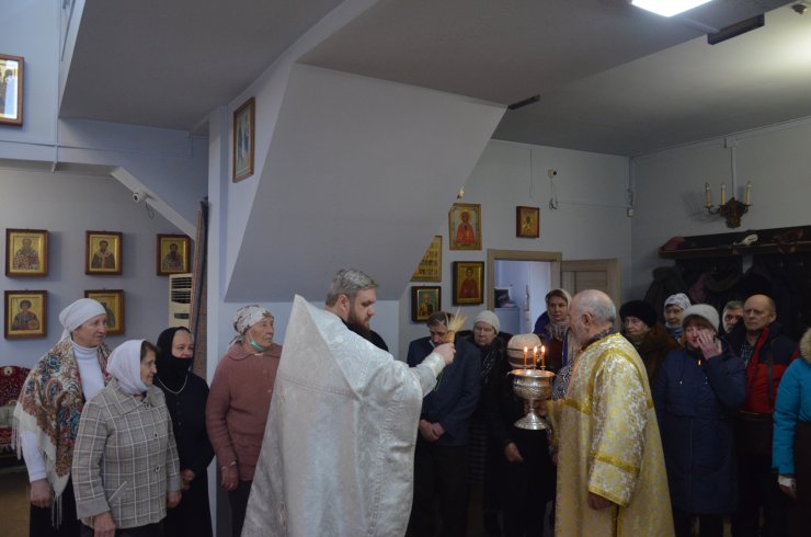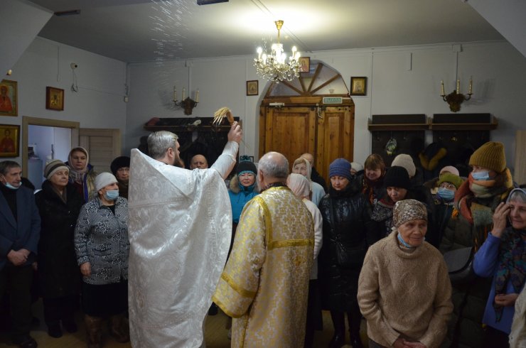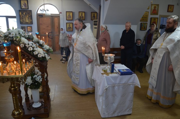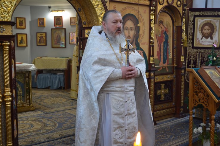 службу возглавил иерей Андрей Зотов, в служении клириков храма: иерея Константина Мемячкина и иерея Тарасия Борозенца. По окончании Литургии была совершена великая вечерня праздника Крещения Господня с чином Великого освящения воды.