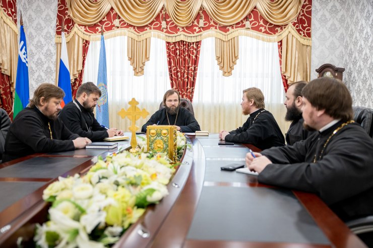 В ходе совещания обсуждалась работа епархиальных отделов согласно годовому плану, рассматривались текущие вопросы. Совещание, по благословению митрополита Ханты-Мансийского и Сургутского Павла, будет проходить еженедельно.