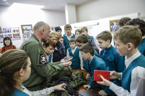 В ходе встречи ребята смогли пообщаться с Дмитрием Орловым, заместителем атамана Обь-Иртышского отдельского казачьего общества Сибирского казачьего войска. Дмитрий был добровольцем в зоне СВО, знает, что это такое встречать вооруженного врага лицом к лицу. Это его ребята спрашивали: можно ли научиться не бояться на войне, отличается ли сухпаек сегодняшних бойцов от тех, что были у наших воинов в Великую отечественную войну, и какая техника сегодня противостоит нашим бойцам.  Орлов организовал для гимназистов небольшую выставку боевой атрибутики и снаряжения.  Сегодня Дмитрий в казачьем обществе занимается патриотической работой с молодежью, потому что знает, чем можно заинтересовать ребятню.