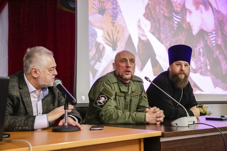 Директор православной гимназии имени святых равноапостольных Кирилла и Мефодия города Ханты-Мансийска, Светлана Семёнова открыла встречу обращением к учащимся. «Наша совесть, — сказала она, — приближает нас к Богу и пониманию чести служения Родине, поэтому важно быть открыты этому чувству, совесть не подведет в оценке той информации, которую вы получаете, особенно от гостей в нашей сегодняшней встрече».