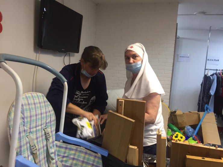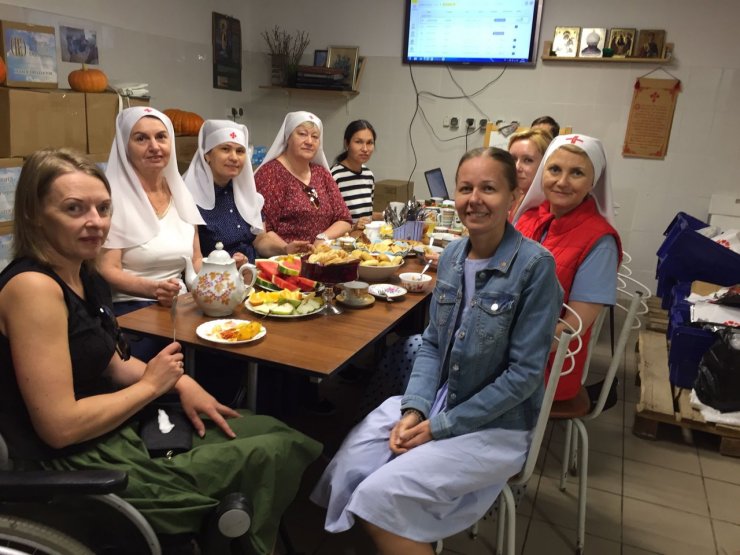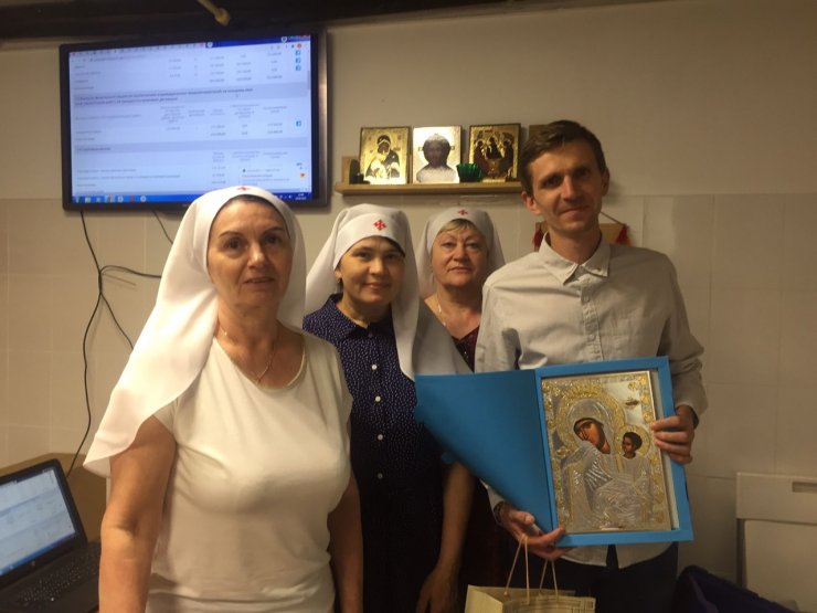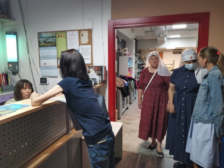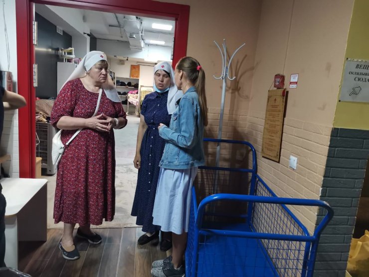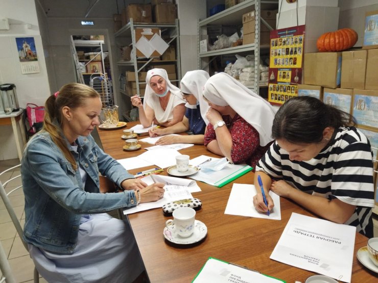 Основное и главное служение сестер – это подготовка к святым таинствам болящих, находящихся на лечении в ОКБ, ОНКОЦЕТРЕ и ПНД. Но время не стоит на месте и предлагает развитие новых направлений милосердного служения ближним. Сейчас сестры трудятся и в Православной социальной лавке «Твори добро». Это вещевой склад, который существует и действует благодаря пожертвованиям благотворителей. В процессе нашего служения на новом поприще мы ознакомились с проблемами малоимущих, многодетных семей, инвалидов, людей, попавших в трудную жизненную ситуацию и столкнулись с проблемами по оказанию им необходимой помощи. Пришло понимание, что необходимо развитие и других направлений, оказываемой поддержки для нуждающихся. А для этого необходимо создание комплексного гуманитарного центра, для открытия которого нужны определенные знания. С целью перенять опыт в сфере этой деятельности, мы и обратились к исполнительному директору ПСМ г. Екатеринбург Евгению Шатских. Договорились о нашей учёбе непосредственно на базе Центра Гуманитарной Помощи.