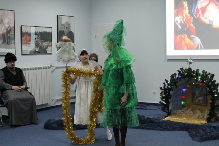 С приветственным словом ко всем собравшимся в зале обратился настоятель храма иерей Леонид Бартков. Учащиеся воскресной школы представили вниманию зрителей театральную постановку «Рождественская ёлочка», рождению Иисуса Христа были посвящены произведения композиторов-классиков в исполнении скрипично-фортепианного ансамбля, песни «Рождественская», «Взошла звезда ясная», «Рождество Христово», «Ночь тиха», красочная презентация.