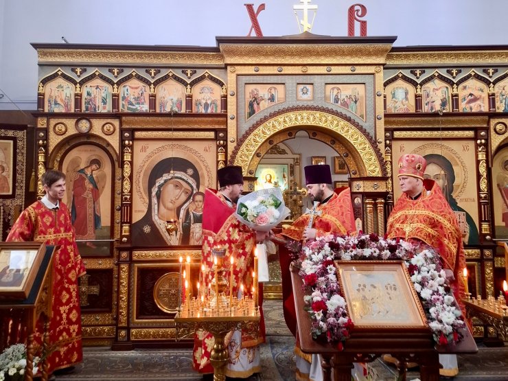 Но на этом радость встречи не закончилась. Сразу после богослужения сердечные поздравления принимал настоятель Знаменского храма иерей Леонид Бартков, который накануне, 16 апреля, отметил сразу два значимых личных события: день рождения и годовщину иерейской хиротонии. Прихожане и гости храма пожелали отцу Леониду духовной крепости, мудрости и помощи Божией в пастырском служении.