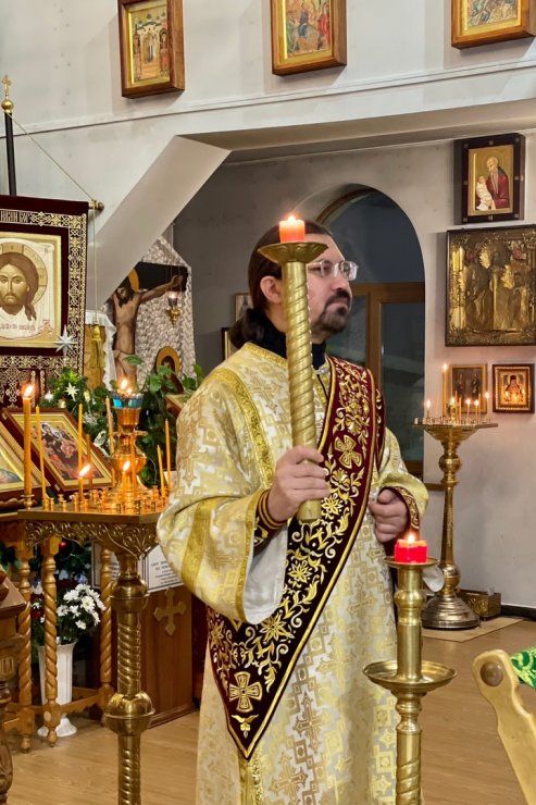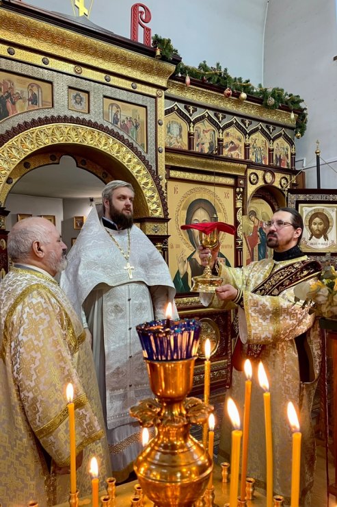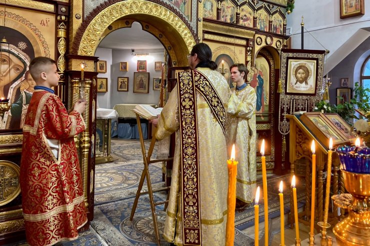6 января 2025 года в Знаменском храме состоялись богослужения Рождественского сочельника – высшей ступени на пути к празднику. Иерей Андрей Зотов в служении диакона Алексия Полянцева совершил последование Царских часов, Изобразительных и Вечерни в соединении с Литургией Василия Великого.