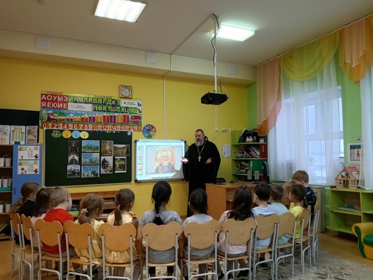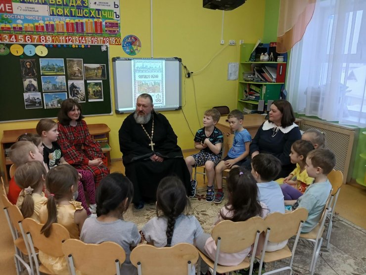 1 февраля 2023 года клирик Знаменского храма иерей Константин Мемячкин посетил детский сад «Одуванчик»: